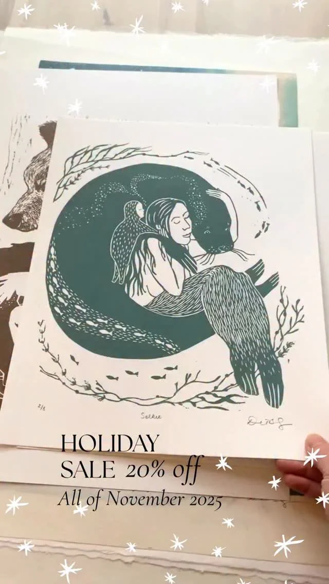 My name is Diem Dangers and I am an artist and folklorist committed to preserving and reviving the living spirit of folklore through my handcrafted linocut art rooted in reverence for the wild feminine and cultural mythologies. My artwork and my writing is inspired by my passion for folktales from around the world that are woven together through their shared honoring of women who nurture, steward, and live in intimacy with the wild or who are creaturely themselves.