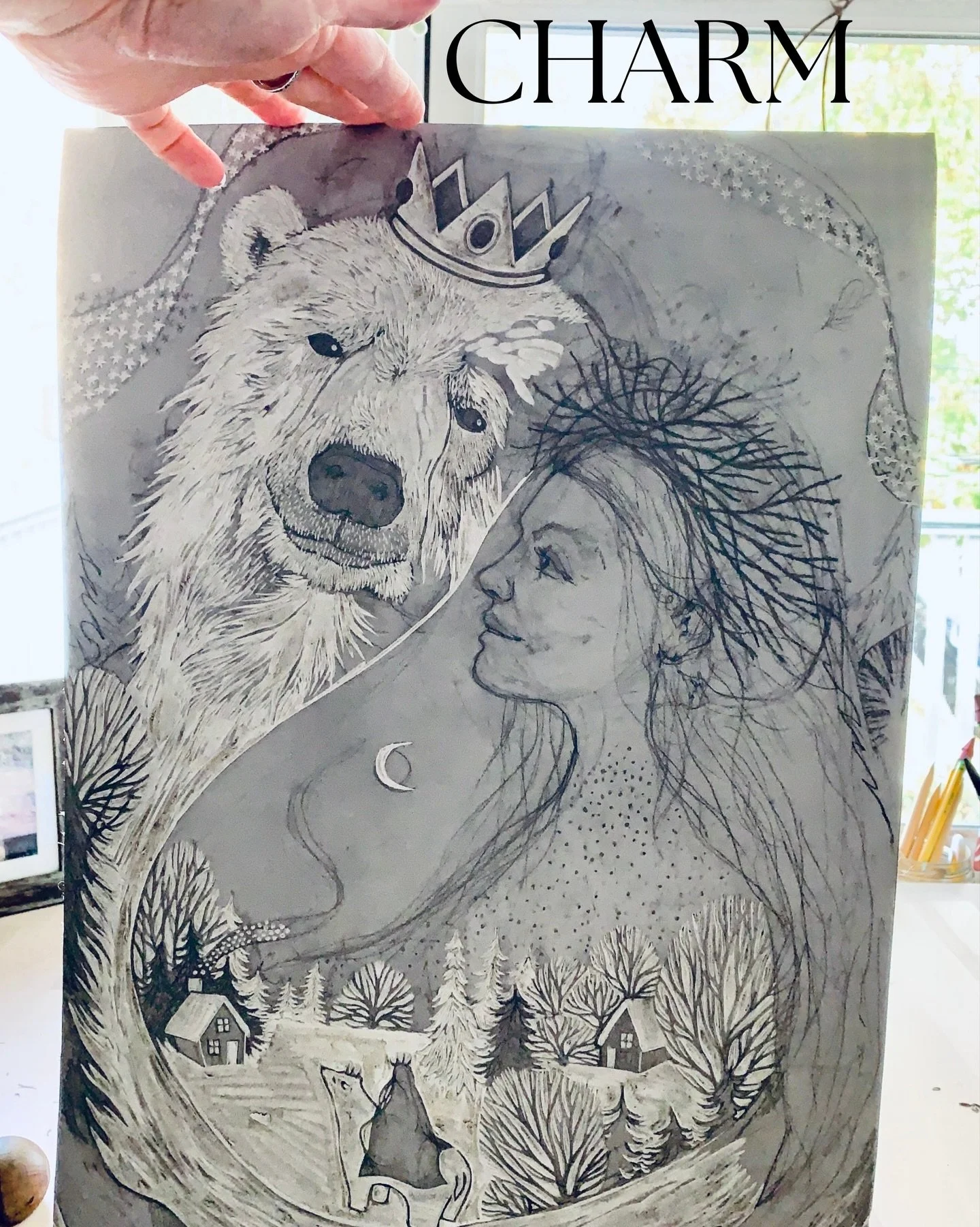 I am deeply inspired by the creative work of Dr. Clarissa Pinkola Estés, Jungian analyst and Cantadora (keeper of the old stories in the Hispanic tradition) who identifies the Wild Woman Archetype in her renowned book Women Who Run With The Wolves. Dr Estés identifies this Wild Woman as La Mujer Grande (the Great Woman), and La Loba (Wolf Woman), but she shares how in her own Hungarian heritage Wild Woman is named Ö Erdöben (She of the Woods), or Rozsomak (The Wolverine). She goes on to describe how this Wild Woman shows up in so many cultural traditions. Among the Navajo she is Na'ashjé'ii Asdzáá (Spider Grandmother), and in Guatemala she is Humana del Niebla (The Mist Being). In Japan she is Amaterasu Omikami (The Numina who brings all light and consciousness), and in Tibet she is Dakini (the dancing force which produces clear-sight within women). . .and the list goes on. My work is a humble honoring and celebration of these Wild Women who show up again and again in folklore around the world as wild goddesses, plant medicine keepers, priestesses, dream weavers, feral females, wild witches, magical creatures, maidens, mothers and crones. I believe folktales of the Wild Woman have the power to enliven our sense of enchantment with the earth, revive our collectively shared ancient honoring of the sacred feminine, and rekindle the lost and buried connections we have with each other.