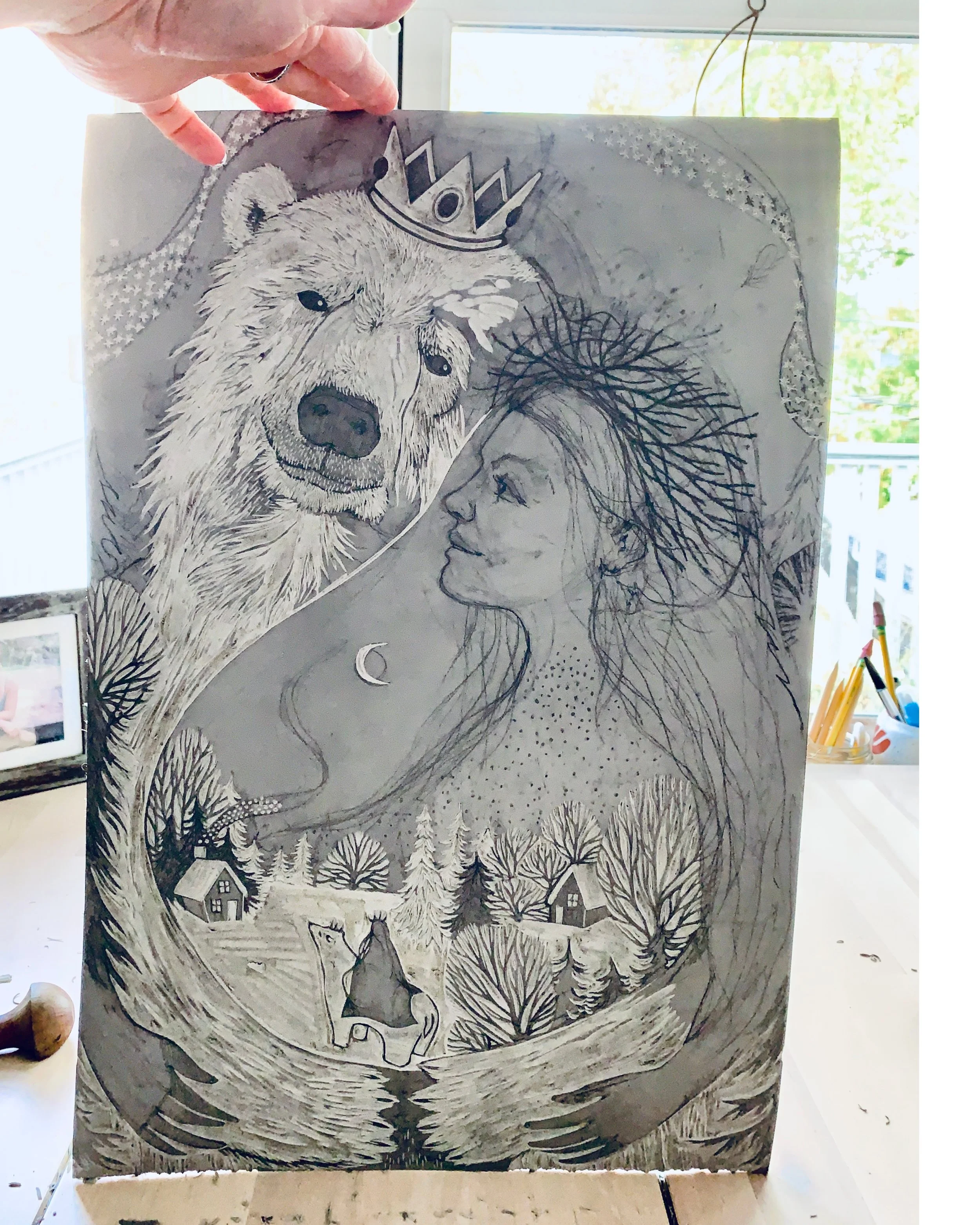 Bear also is evoked in stories of growth, initiation and transformation. In the ancient Norwegian folktale East of the Sun, West of the Moon, a young woman is betrothed to Bear whom she discovers is a human prince under a wicked spell. She undergoes a perilous journey to save him, and in the end she discovers her own power, resolve, courage and resilience. Once more, here we find a story about how a relationship with Bear is initiatory and transformative for the human woman. Bear helps motivate her to undergo the hardship she needed to experience to discover her true strength, he is deeply integral to her own becoming.