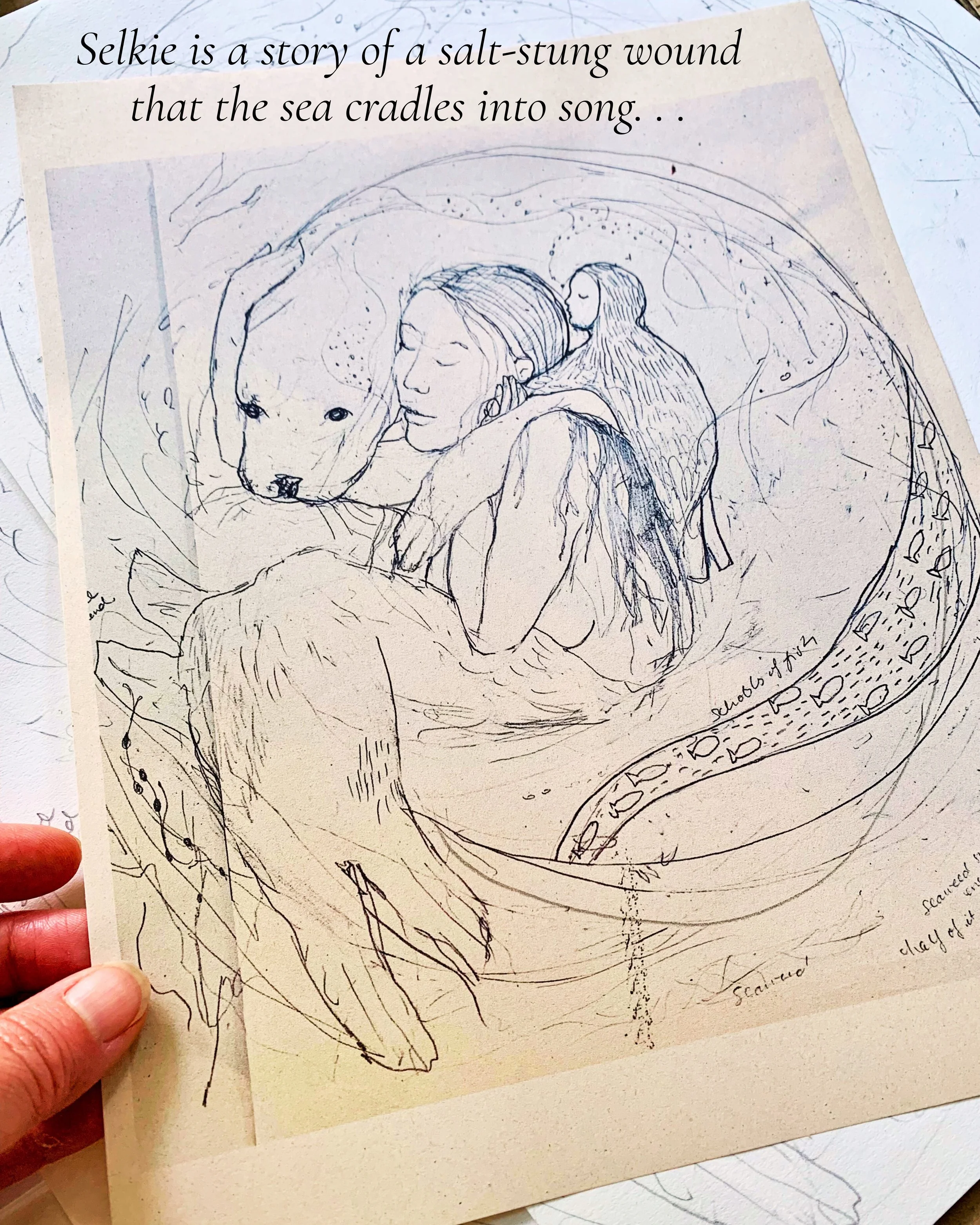 And when we listen closely, we hear in his story that some myths do not resolve—they echo. In the tale of the Selkie, we glimpse a deeper truth of grief and loss threaded through many families: that sometimes, to find oneself, one must lose another. Sometimes, becoming whole demands an act that feels like betrayal. And behind every wounded mother is a child who grows beneath the shadow of her ache—no matter how much she heals, some current of her loss is woven through the tides of the child’s becoming. These wounds may not be the fault of only the ones who carry them—they may be the ripple of a theft that happened long before, a theft of a skin, the colonizing of freedom, a silencing deeply rooted in the past. And so, what remains is not closure. It is not a puzzle meant to be solved, but a tide of love and longing, absence and becoming, that must be carried and felt—like saltwater tears pulling at the heart and soul.